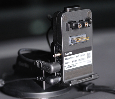また、これまでは各種センサーやケーブル類を直接ナビ本体に接続させる方式であったのに対し、本機ではクレードル式のスタンド側に