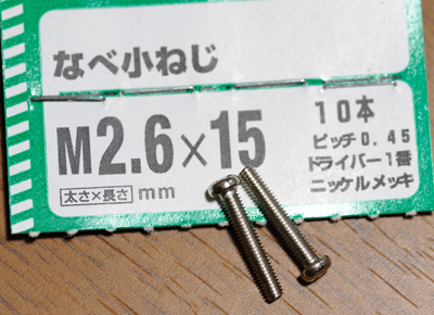 次に後者のねじ技を試してみるべく、ホームセンターへ行って適当なねじを購入してみた。