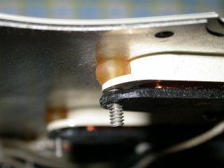 ピックアップ高さ調整用のスプリングにはゴムチューブを切断したものを使用。