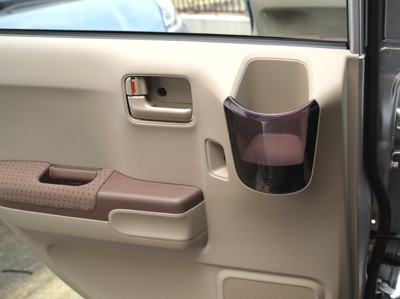 しかし、折りたたみ式ではない長い雨傘を、運転席から手の届く範囲に保管するための丁度良いものが無いので、これに関しては何らかの工
