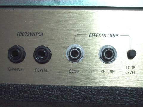 右はエフェクトループ、左はフットスイッチ・ジャックです。