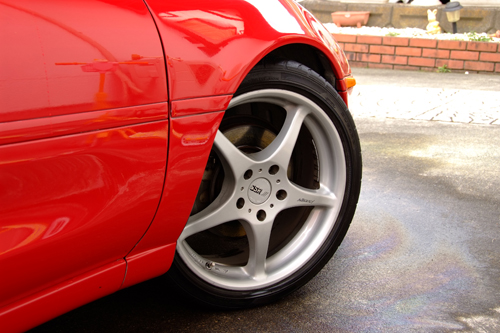 フロントは17インチ7J+32に、215−40のタイヤをセット。