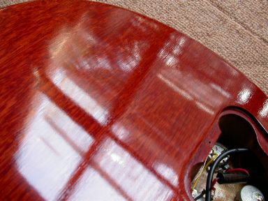 それまでの決して薄いとは言いがたい塗装から、マホガニーのザラザラした凹凸が表面に現われるほど薄い塗装になり、