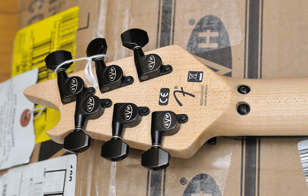 ちなみに、ギターの下に敷いてあるEVHのダンボール箱は、米国からの配送時に使用されたもの。
